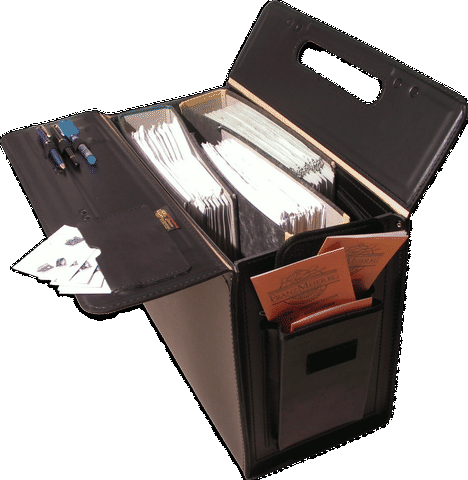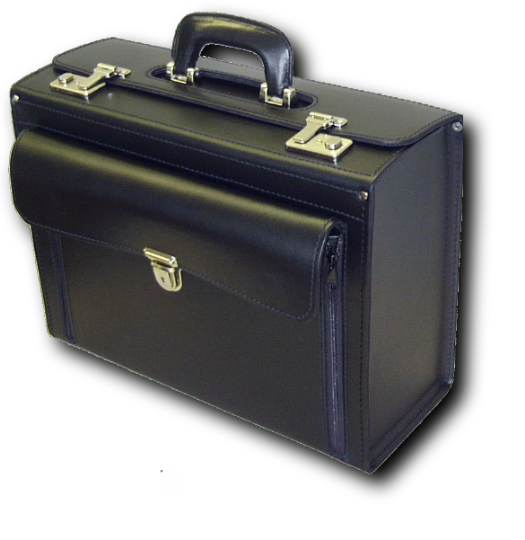 Pilotenkoffer aus ca 2,5 mm starkem, hochwertigem, schwarzem Rindleder.